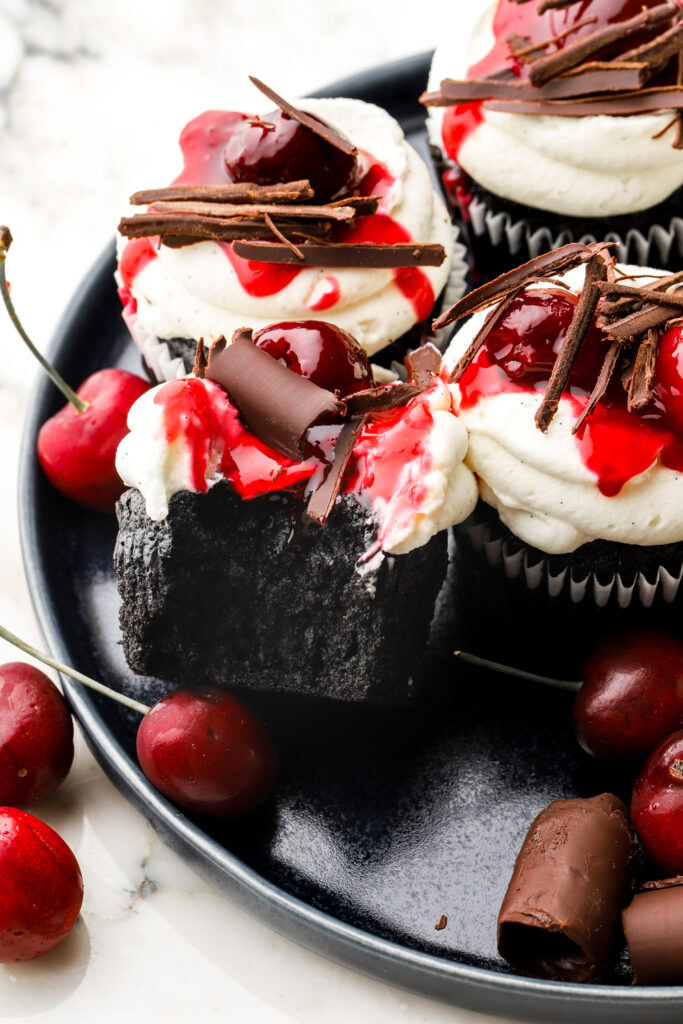 Thanks so much for reading todayโs post, if you have any questions just comment down below. If you make these black forest cupcakes, Iโd love it if you left a star rating or a review for me!