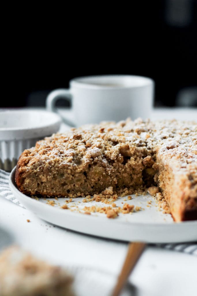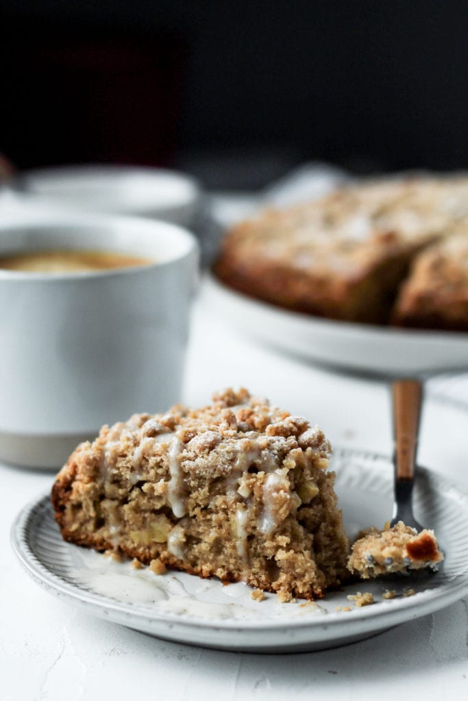 Apple cinnamon coffee cake with a crispy cinnamon streusel and chunks of apples throughout, perfect with a cup of coffee!