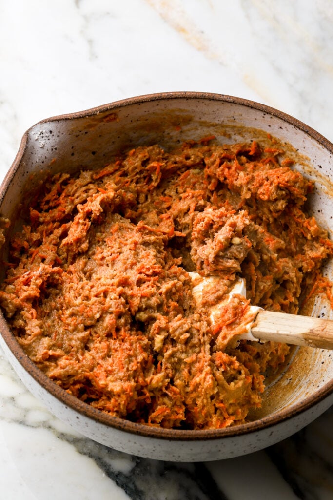 - Pecans: I love adding ground up pecans or walnuts to any carrot cake dessert. I haven’t tested it with this recipe but I have subbed the nut flour for a little less all-purpose flour in other recipes and it turned out well. So if you need it to be nut free, I would probably do about ½ cup of flour in place of the ground nuts.