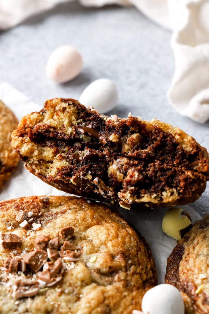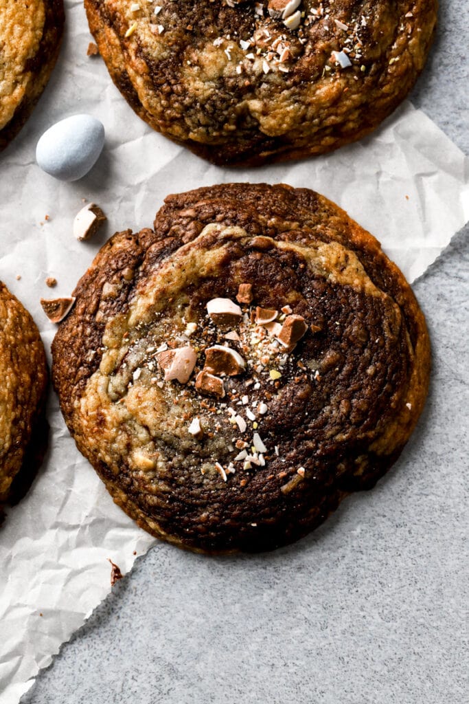 [adthrive-in-post-video-player video-id=”ZxybPiOr” upload-date=”2024-02-15T23:44:02.000Z” name=”Mini Egg Cookies.MOV” description=”Marbled chocolate and vanilla cookies studded with chopped Cadbury mini eggs and pools of dark chocolate. They’re quick and easy to make with minimal chill time making them crisp on the outside and soft and chewy in the center!ย ” player-type=”default” override-embed=”default”]