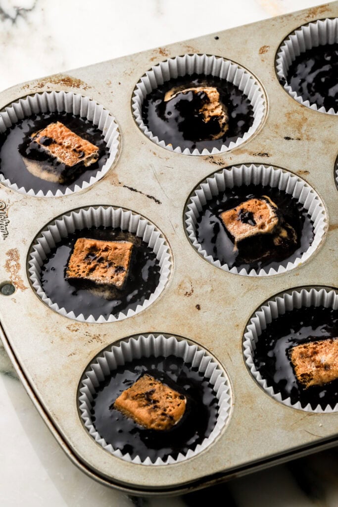 - Once the cupcakes have cooled, poke holes in the top and drizzle the rest of the espresso on top of the cupcakes. You could use a pastry brush to do this or a small spoon.