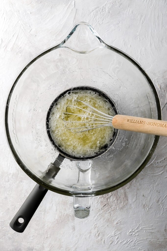 - Add the room temperature butter and the oil and use an electric mixer to beat them at medium, until theyโre crumbly like a streusel.