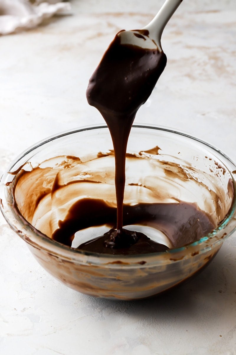 Step 10: Stir the chocolate ganache gently until itโs completely melted and smooth. Allow it to cool while you assemble the cake.