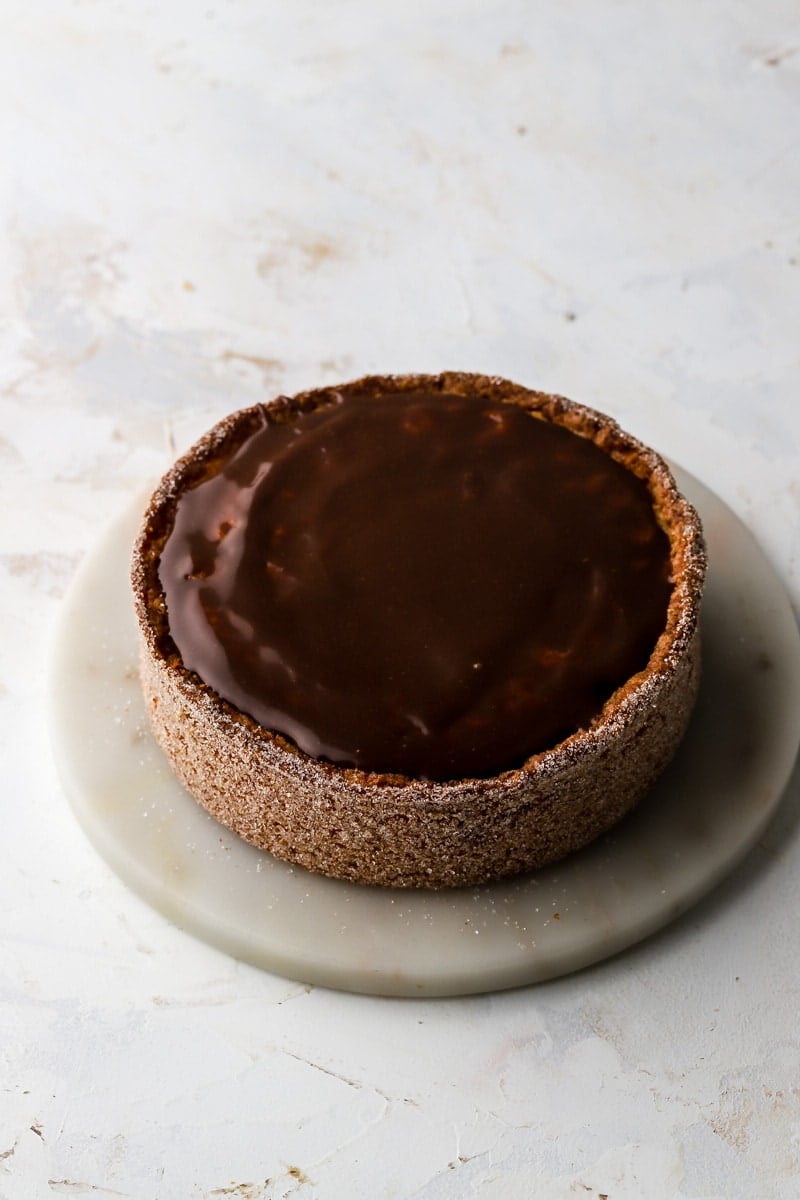 This churro cake is a fluffy and moist vanilla cake swirled with cinnamon sugar and a cinnamon sugar coating. Itโs frosted with brown sugar cinnamon ermine buttercream and layers of dark chocolate ganache.